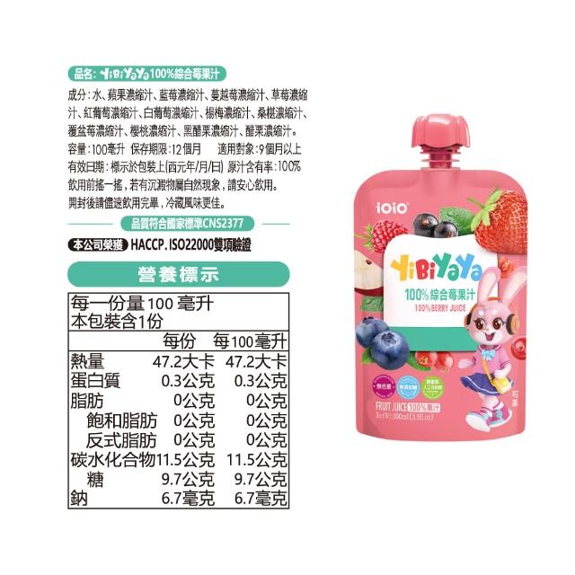 十全iOiO食在愛我YiBiYaYa一比呀呀100%綜合果汁100mlX15入/組