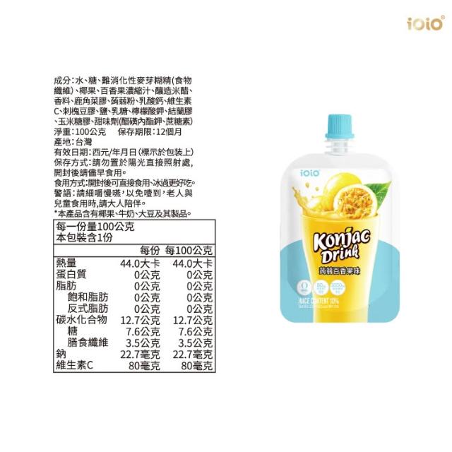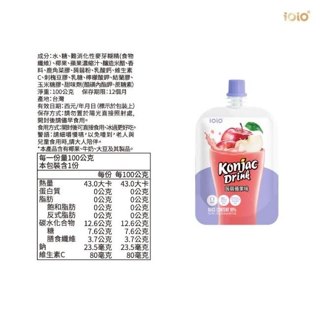 十全iOiO食在愛我超口感蒟蒻100gX20入/組(蘋果/白葡萄/百香果)
