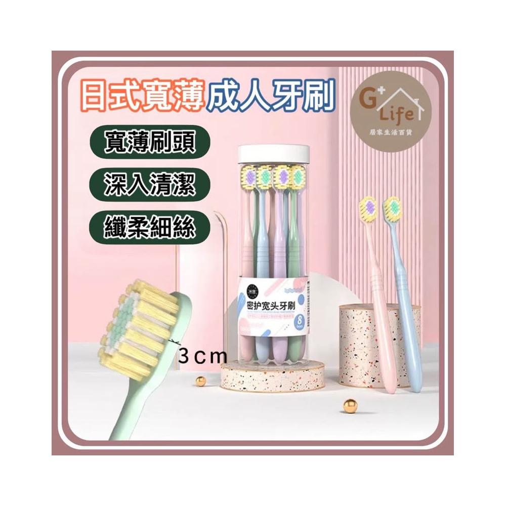 G+ Life成人寬頭清潔牙刷8支入 軟毛牙刷 旅行牙刷 一次性牙刷 素色牙刷 口腔清潔 牙刷 細毛牙刷 成人牙刷