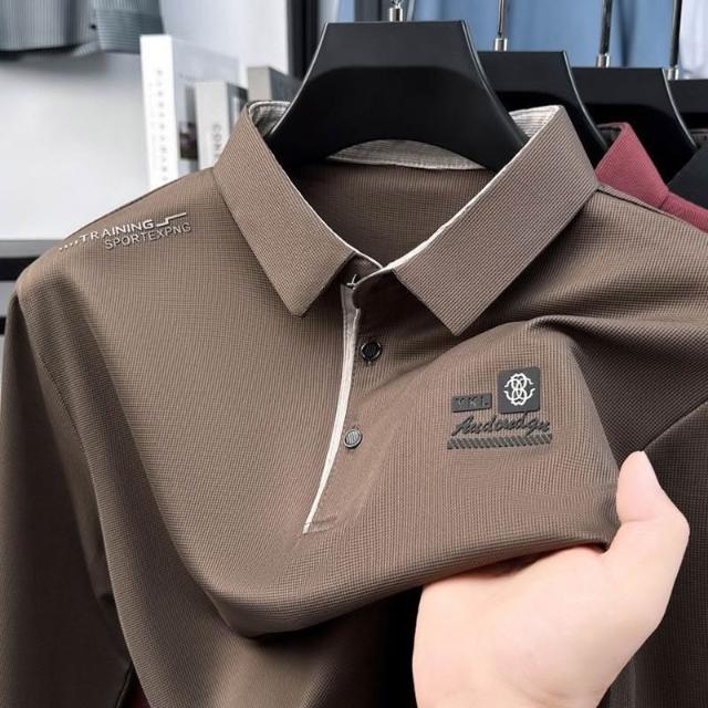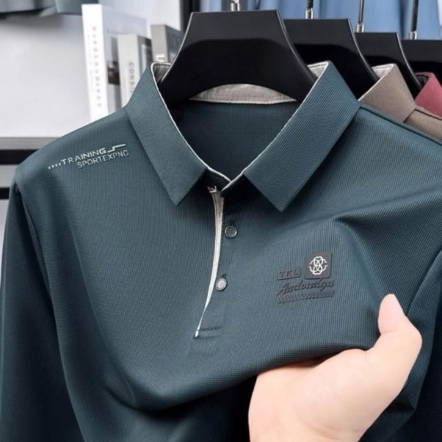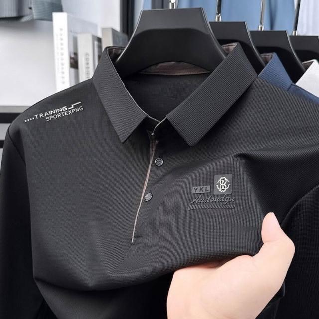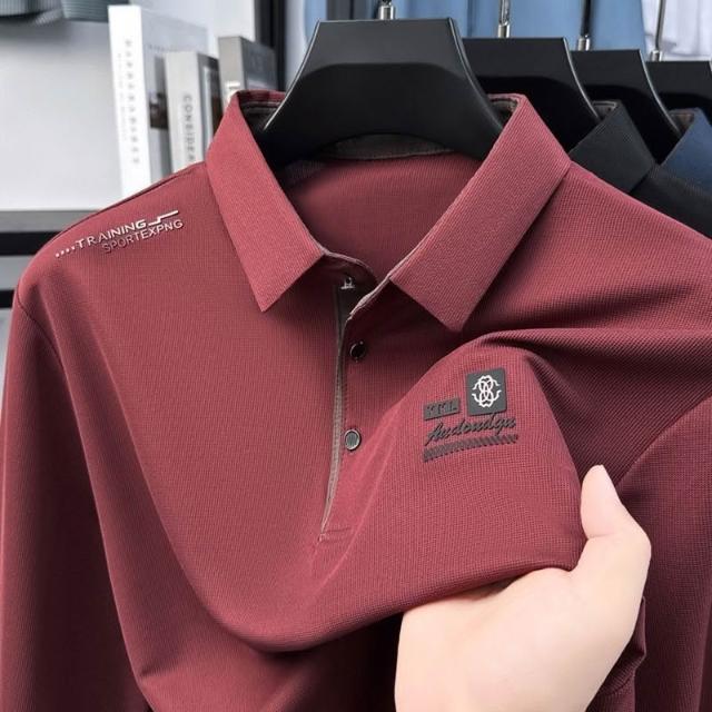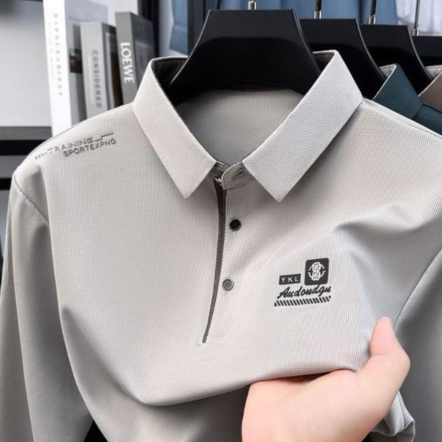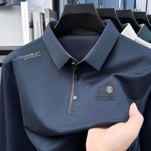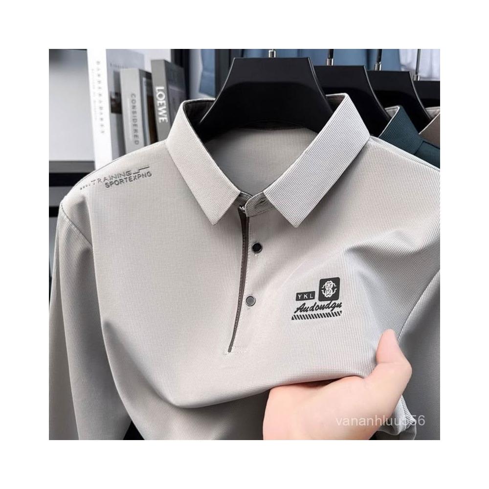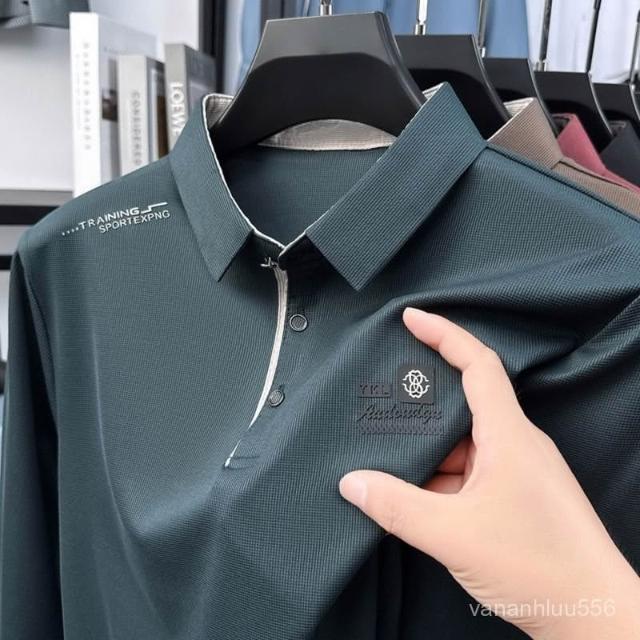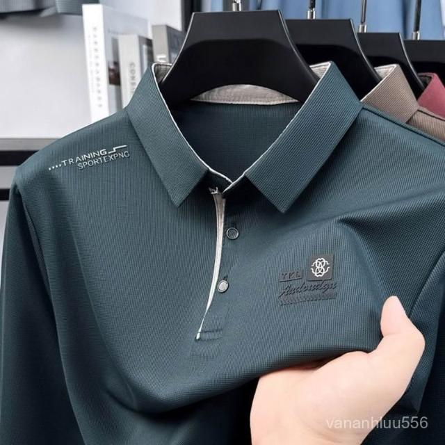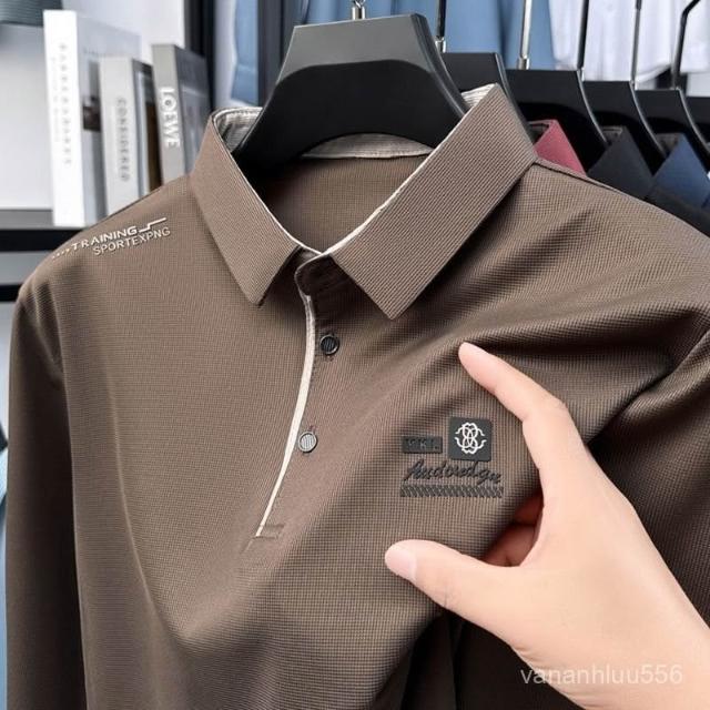 爆款男士翻領T恤polo衫日常百搭休閒秋季方領薄款秋衣長袖