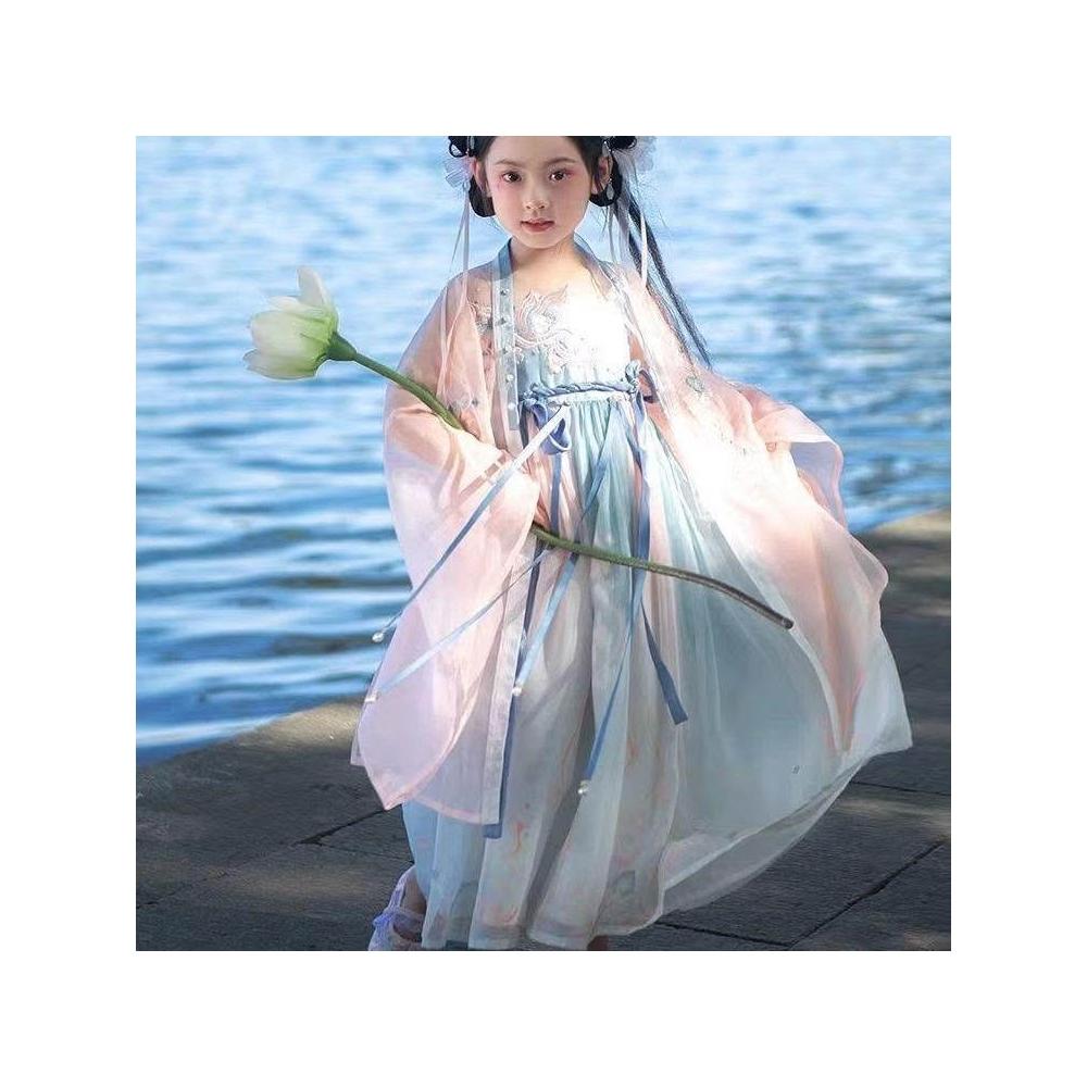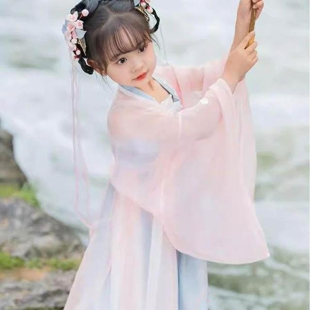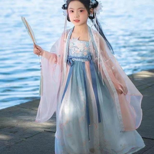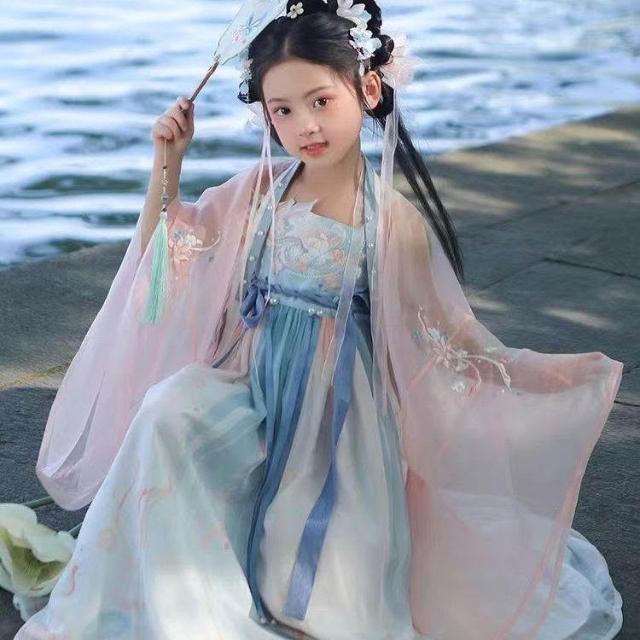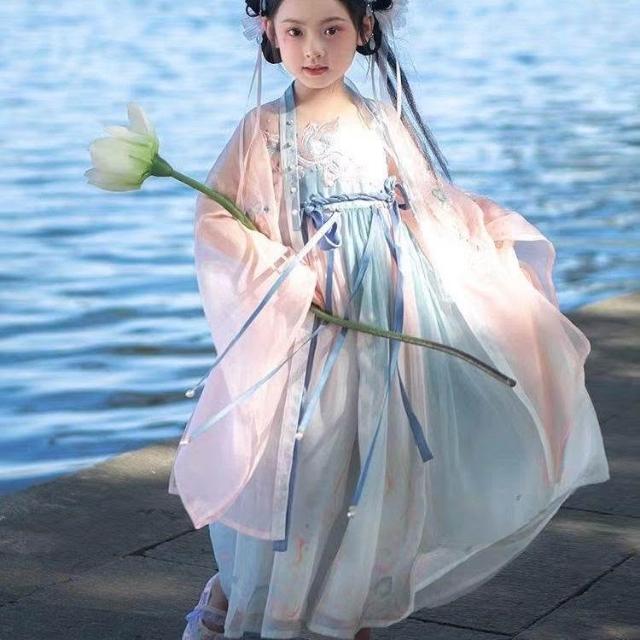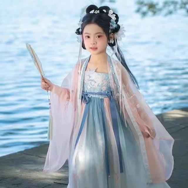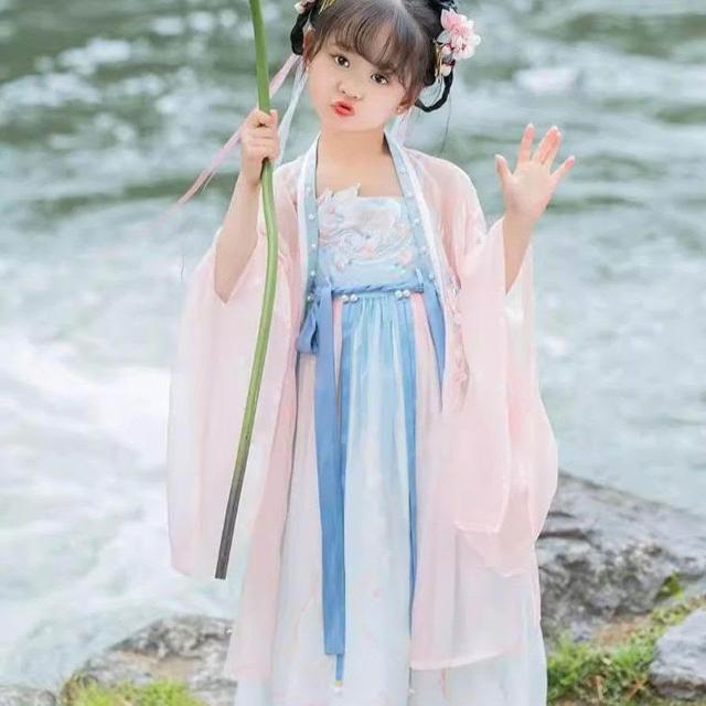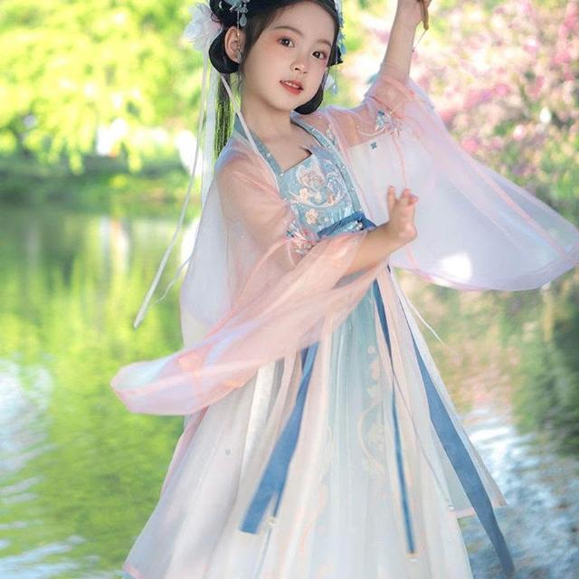 贝贝嚴選漢服兒童女童宋制廣袖古風超仙古裝新款唐裝小女孩連衣裙長袖套裝
