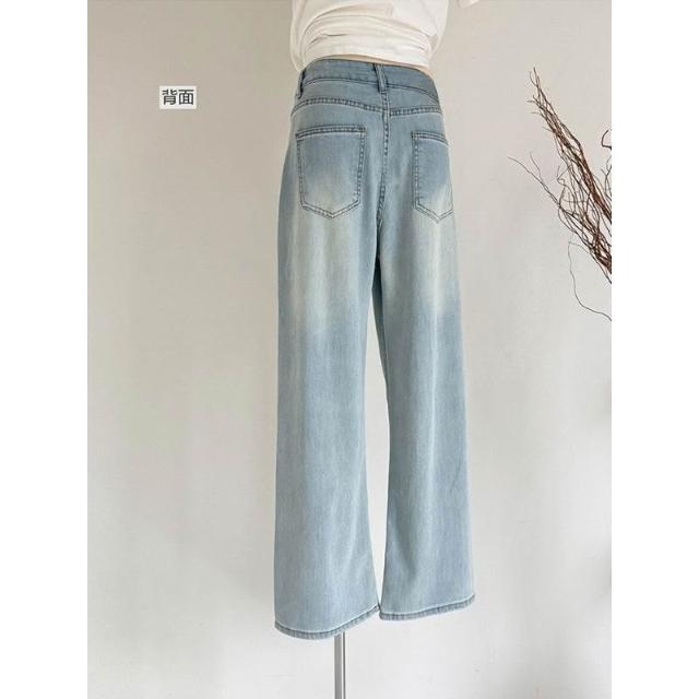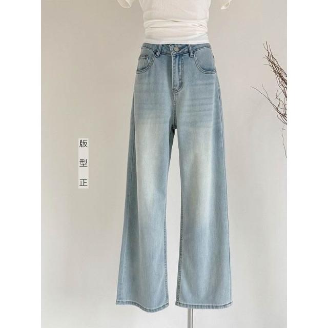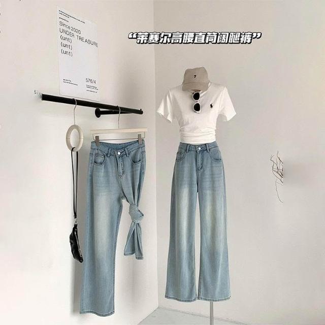 贝贝嚴選萊賽爾涼感淺藍闊腿牛仔褲女2026年春夏新款軟牛仔高腰寬鬆直筒褲