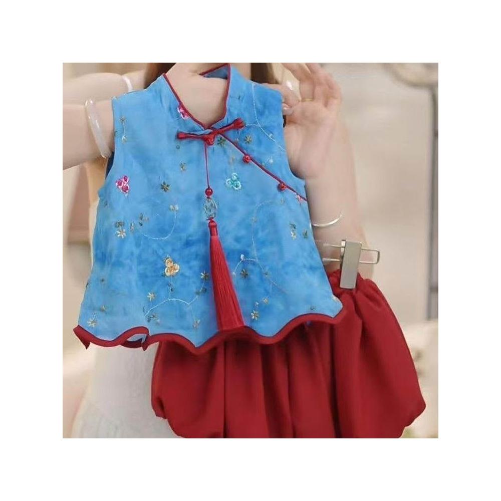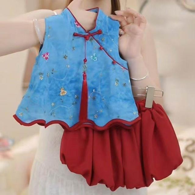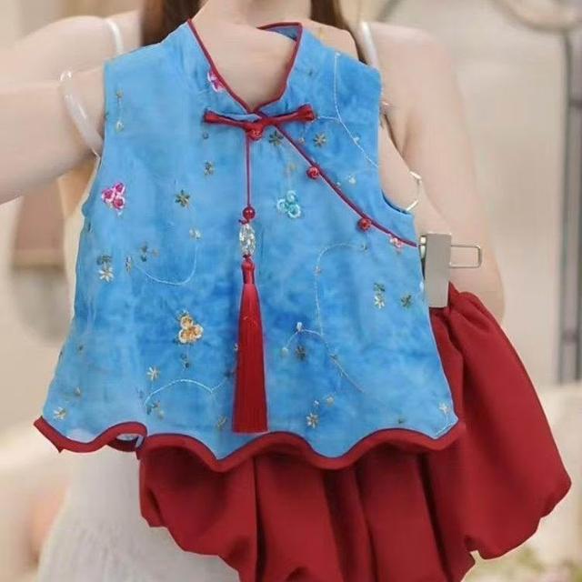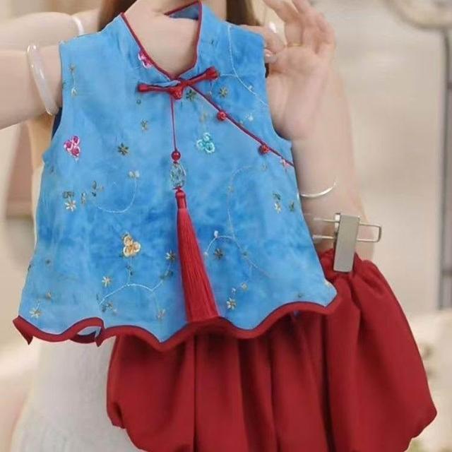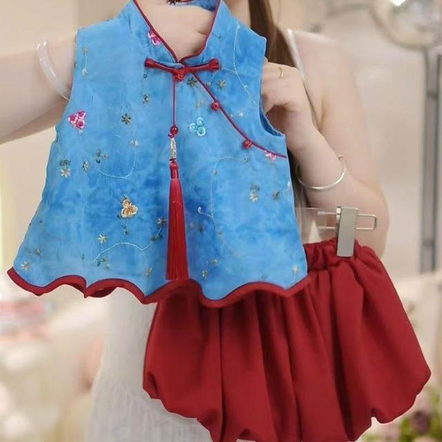 贝贝嚴選女童夏季套裝2025新款女寶寶花朵無袖夏裝小女孩洋氣時髦兩件套