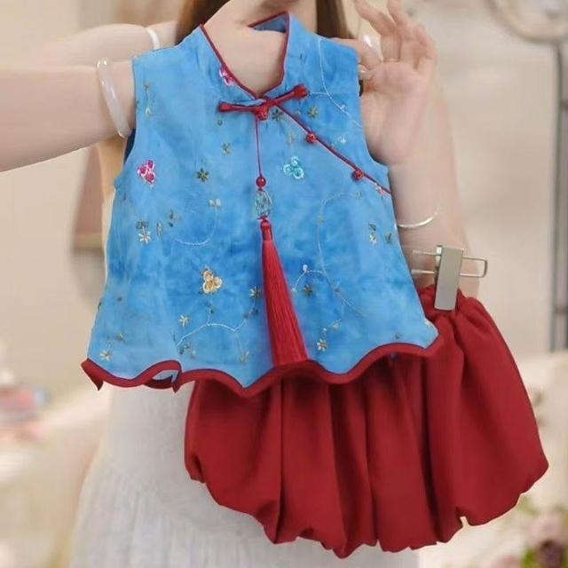 贝贝嚴選女童夏季套裝2025新款女寶寶花朵無袖夏裝小女孩洋氣時髦兩件套