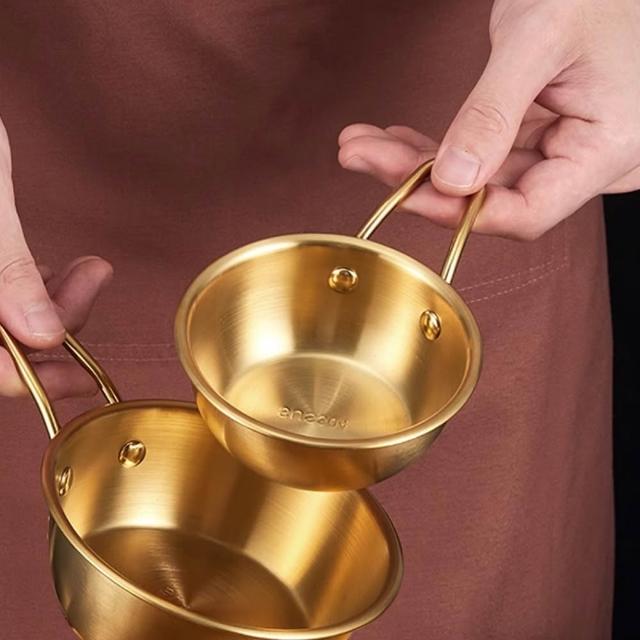 韓式米酒杯200ml 304不鏽鋼 韓國 米酒碗 帶柄 飯碗 金色小碗 小菜分裝碟 醬料碟 零食碗 韓劇 泡菜 涼酒