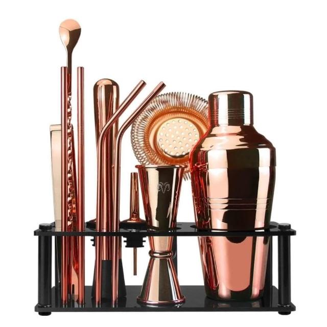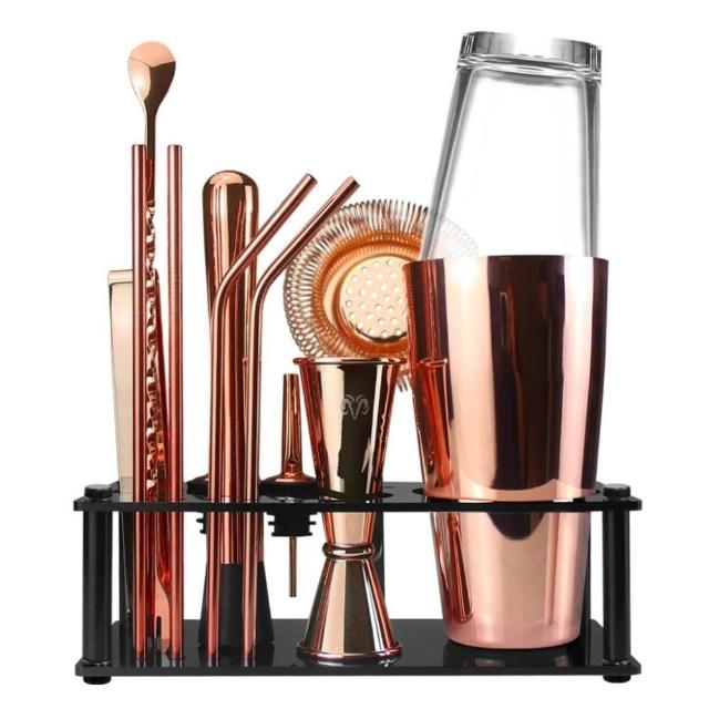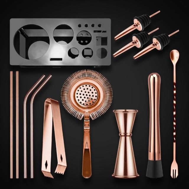 玫瑰金調酒用具組合 304不鏽鋼 雪克杯 調酒器 搖酒器 搖搖杯 調酒 盎司杯 量酒杯 酒吧用具 shaker 酒嘴