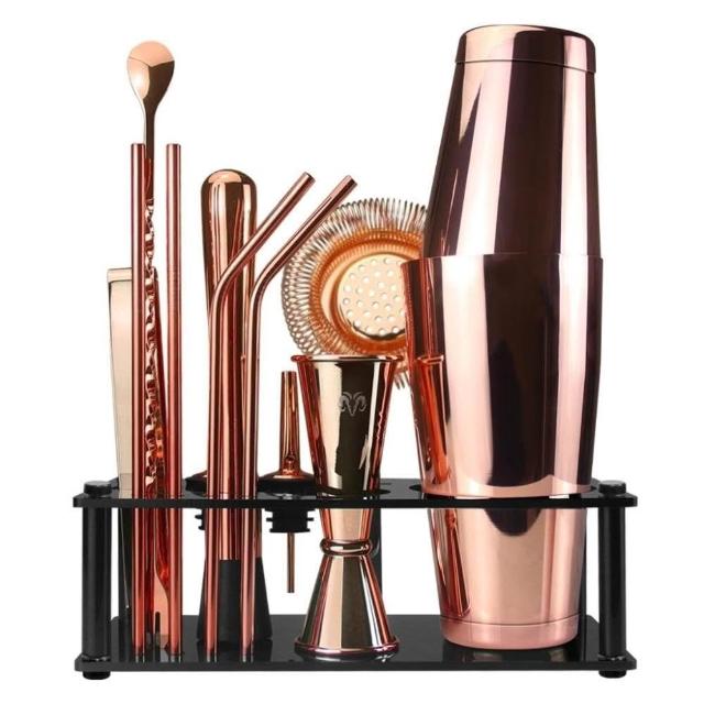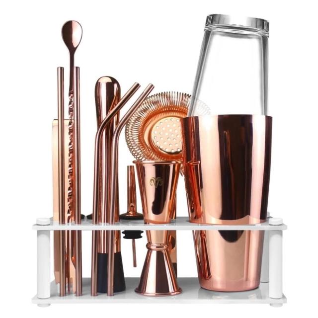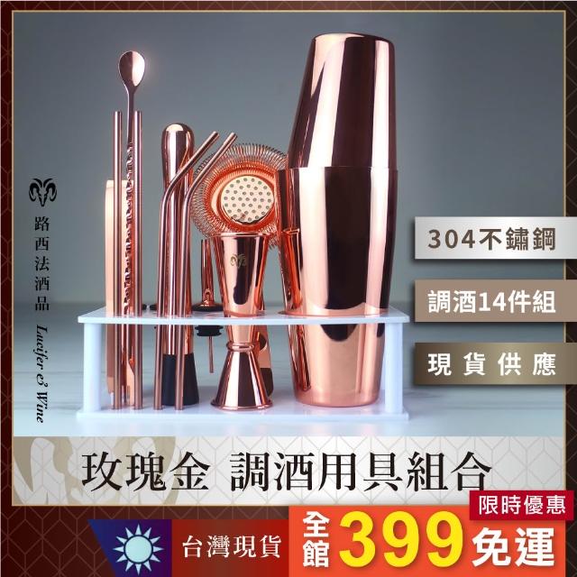 玫瑰金調酒用具組合 304不鏽鋼 雪克杯 調酒器 搖酒器 搖搖杯 調酒 盎司杯 量酒杯 酒吧用具 shaker 酒嘴
