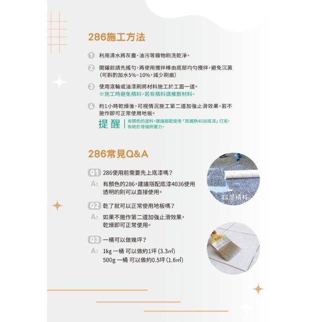 (免運/贈刷/含發票)台灣製 雨漏熱 286 強效止滑地坪塗料 各式地板打滑剋星