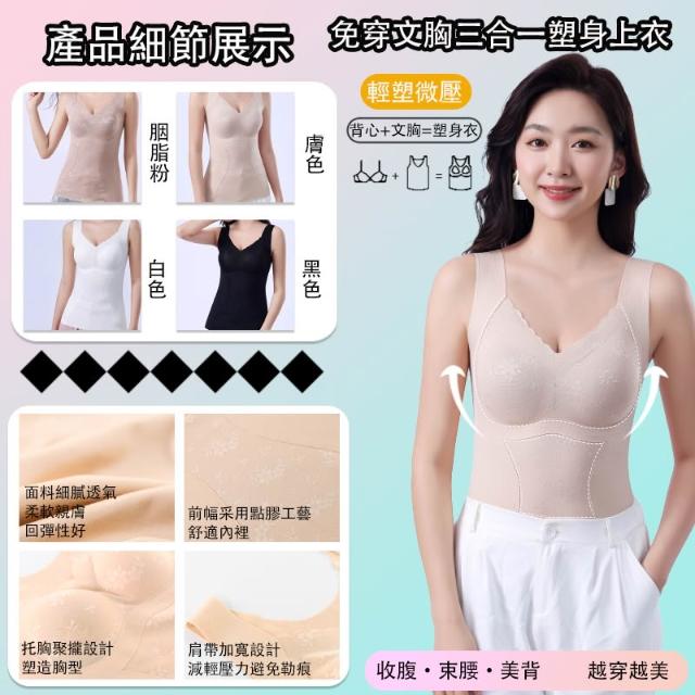 兩件組/科技減壓輕塑美背收腹聚攏塑身内衣/可拆卸帶胸墊美體内衣/托胸聚攏内衣/無痕内衣/聚攏收副乳高彈内衣/塑型内衣