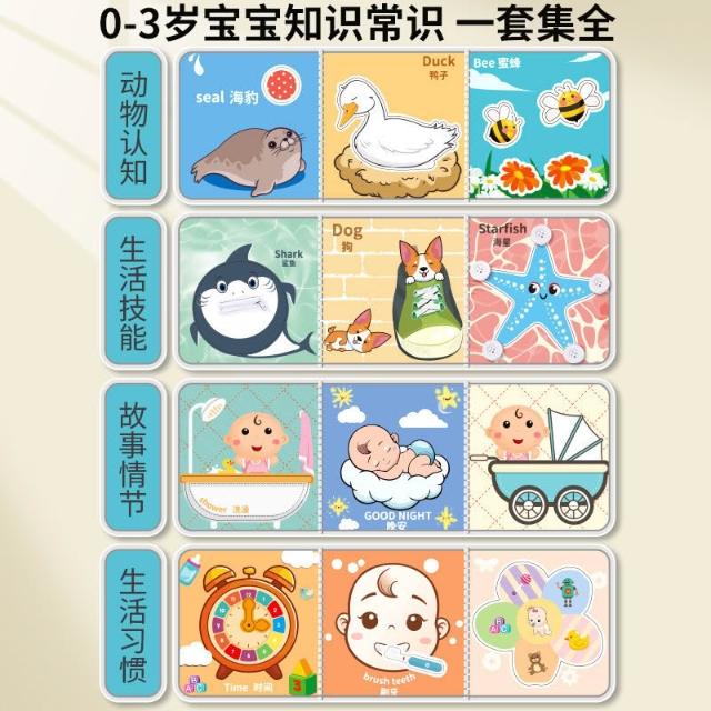 撕不爛寶寶安靜書嬰兒認知早教布書魔術貼可啃咬立體益智啟蒙玩具