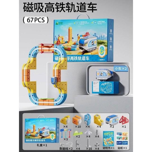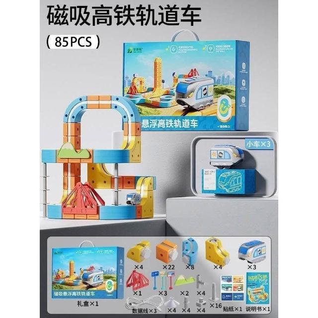 兒童益智電動磁吸高鐵火車魔幻軌道立方體男女孩DIY磁性拼裝玩具