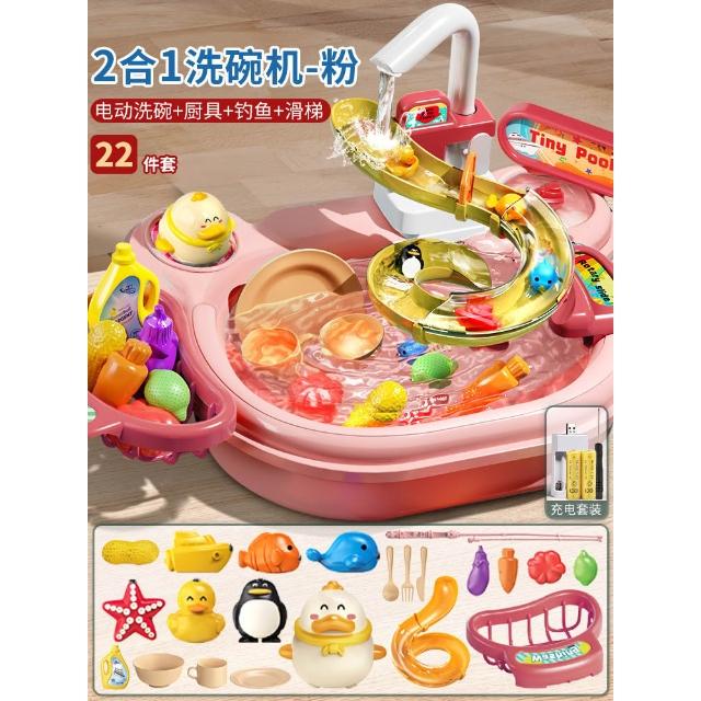 兒童電動洗碗機男女孩過家家廚房全自動玩水益智釣魚玩具水上樂園