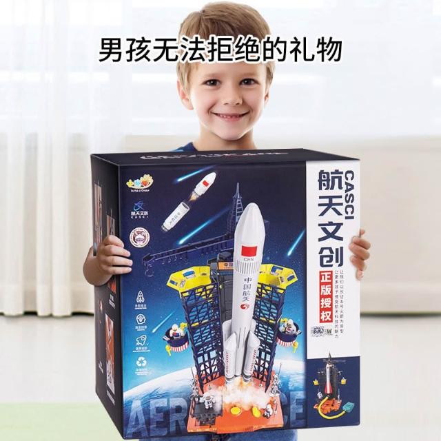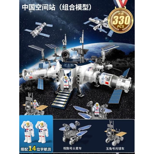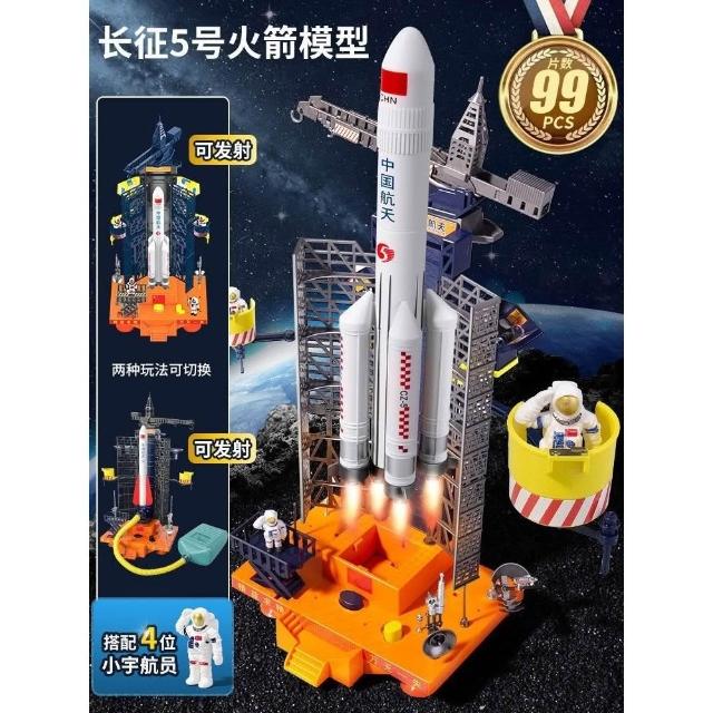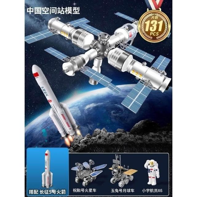 兒童火箭航天飛機玩具長征五號天宮空間站宇宙飛船月球車拼裝模型
