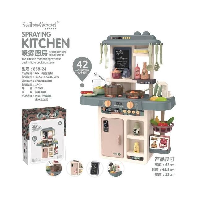 贝比谷女孩仿真厨具电动喷雾做饭过家家儿童出水厨房玩具套装批发