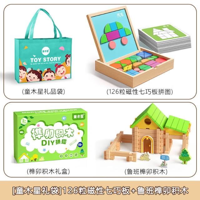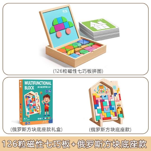 台灣木質磁力拼圖積木3到6歲兒童思維訓練益智磁性七巧板立體幾何玩具
