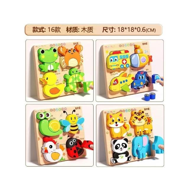 兒童立體木質拼圖板寶寶蒙氏早教配對動物1到3歲形狀積木禮物玩具