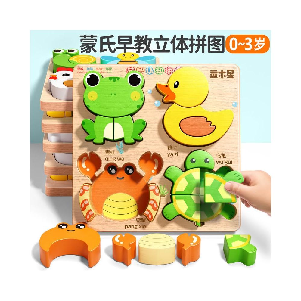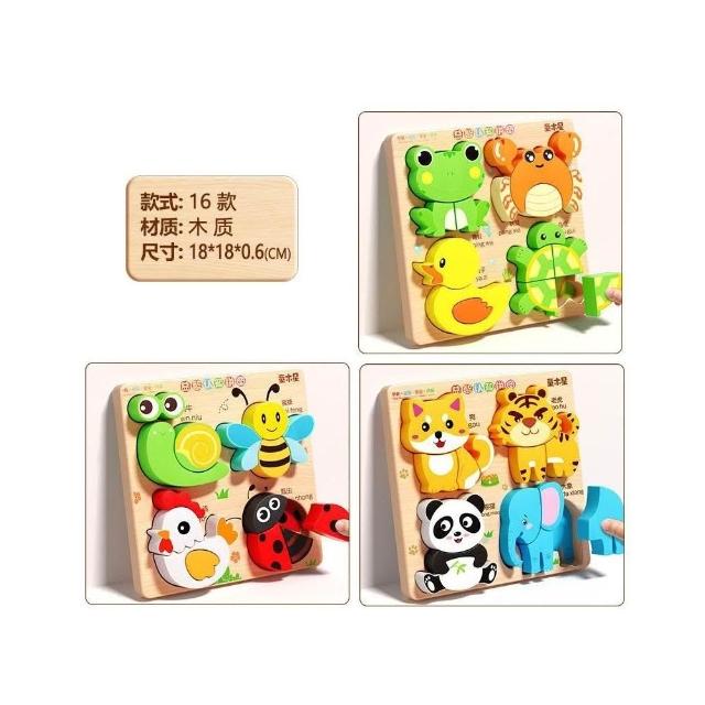 兒童立體木質拼圖板寶寶蒙氏早教配對動物1到3歲形狀積木禮物玩具