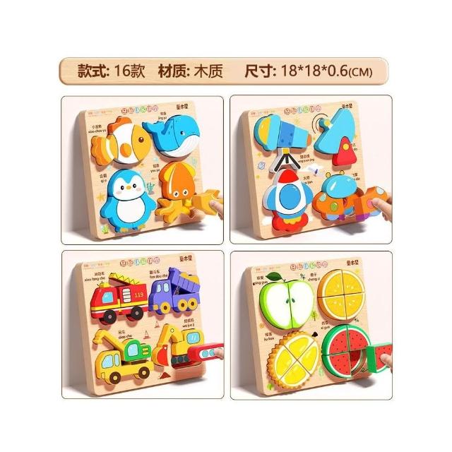 兒童立體木質拼圖板寶寶蒙氏早教配對動物1到3歲形狀積木禮物玩具