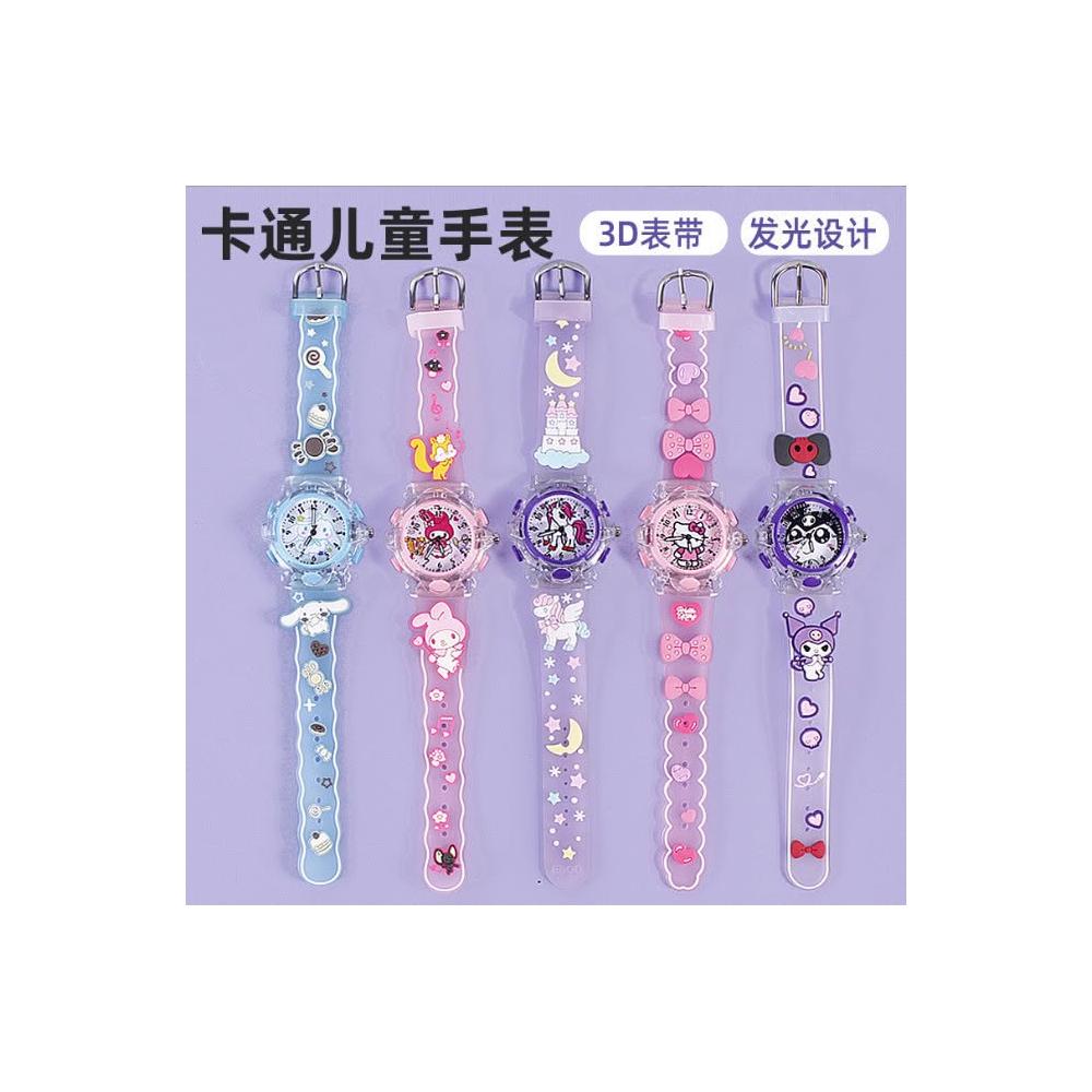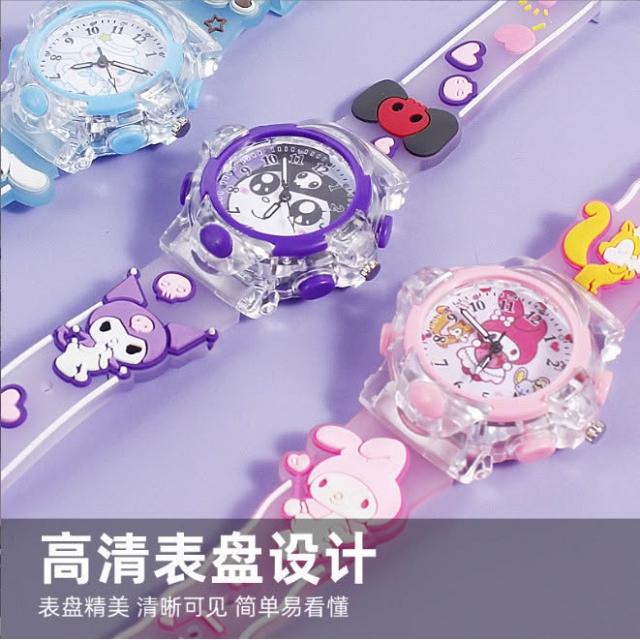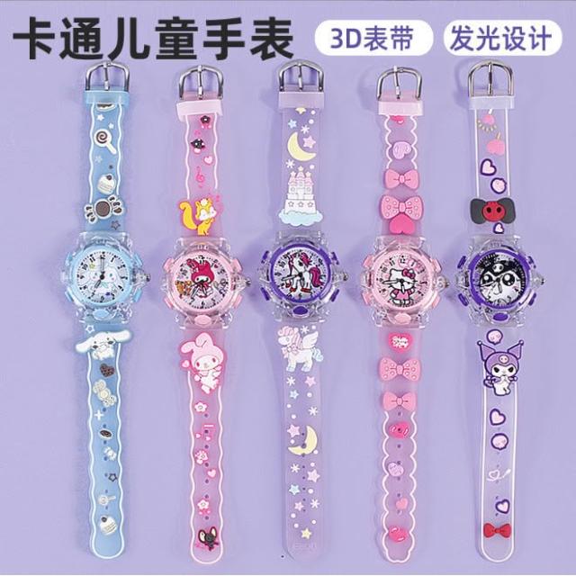 3D立體卡通手錶 七彩發光兒童石英表美樂蒂KT貓學生手錶腕錶