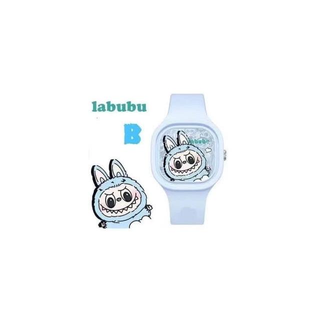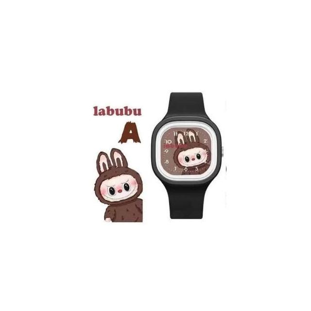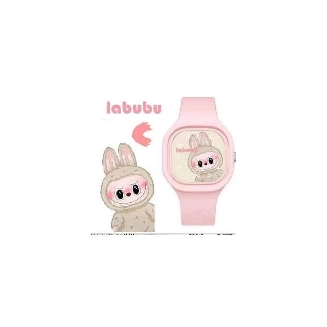 新款泡泡瑪特labubu兒童手錶女孩卡通可愛方形膚感矽膠手錶石英表