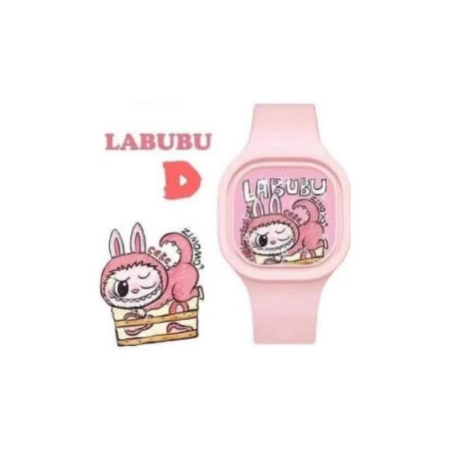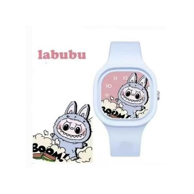 新款泡泡瑪特labubu兒童手錶女孩卡通可愛方形膚感矽膠手錶石英表