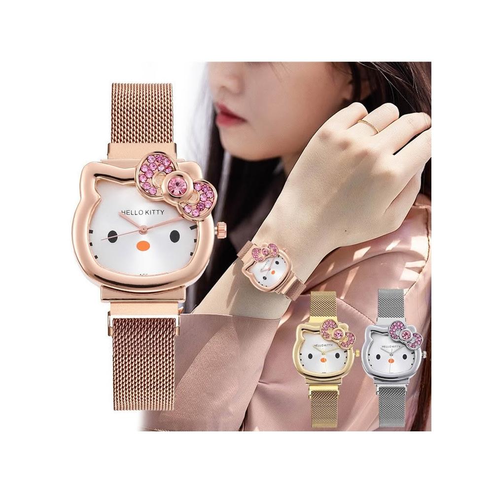 kitty貓咪KT手錶鑲鑽蝴蝶結磁鐵帶可愛卡通女孩學生手錶KT貓女錶