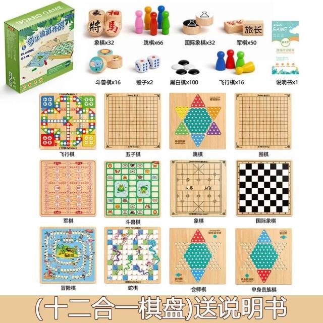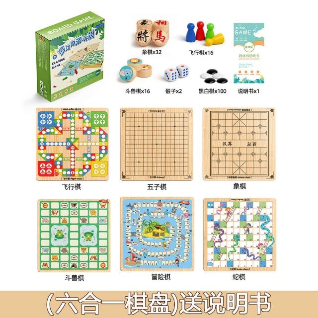 飛行棋跳棋五子棋鬥獸棋小學生初中益智兒童棋盤互動木製禮物玩具
