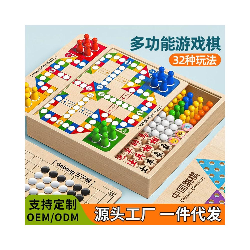 飛行棋跳棋五子棋鬥獸棋小學生初中益智兒童棋盤互動木製禮物玩具