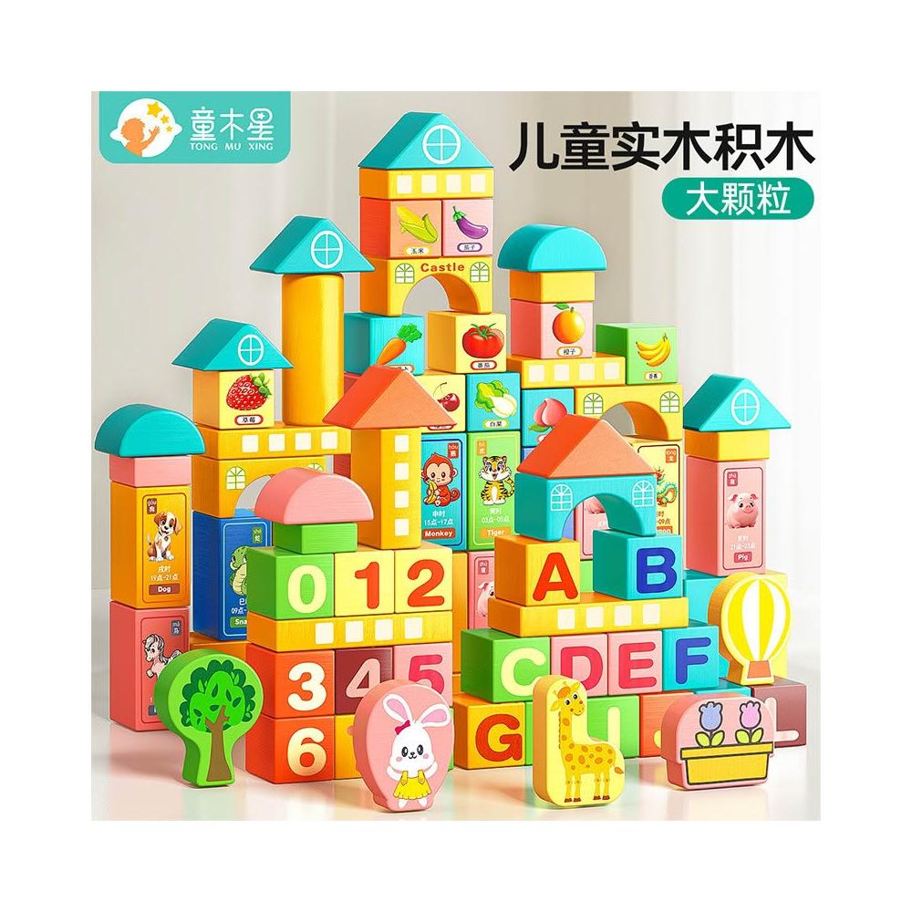 兒童實木積木玩具木質大顆粒嬰幼兒童早教拼裝1-2-3歲3-6歲男女孩