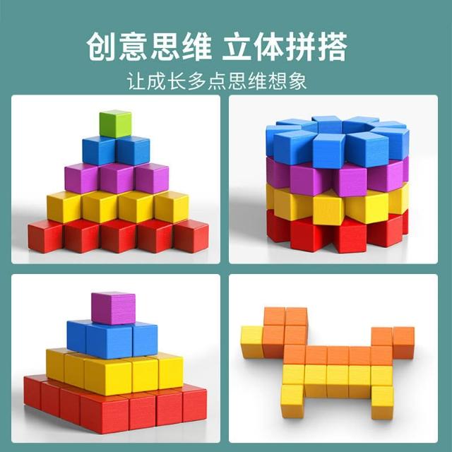正方體積木數學教具兒童大顆粒益智拼裝玩具層層疊彩色小方塊早教