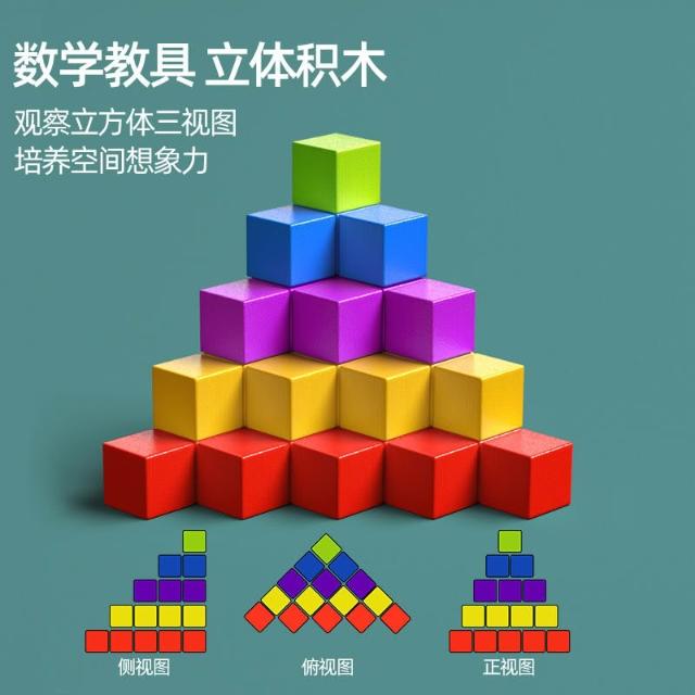 正方體積木數學教具兒童大顆粒益智拼裝玩具層層疊彩色小方塊早教