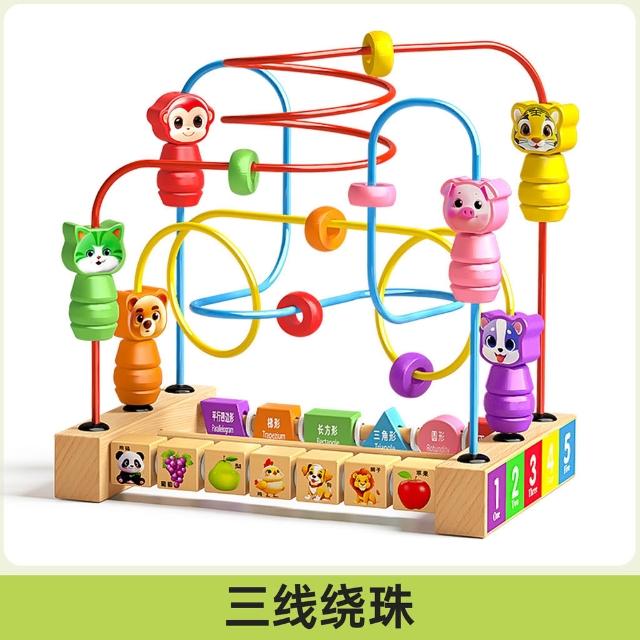 繞珠益智玩具嬰幼兒童寶寶蒙氏早教精細動作訓練專注力三線可啃咬