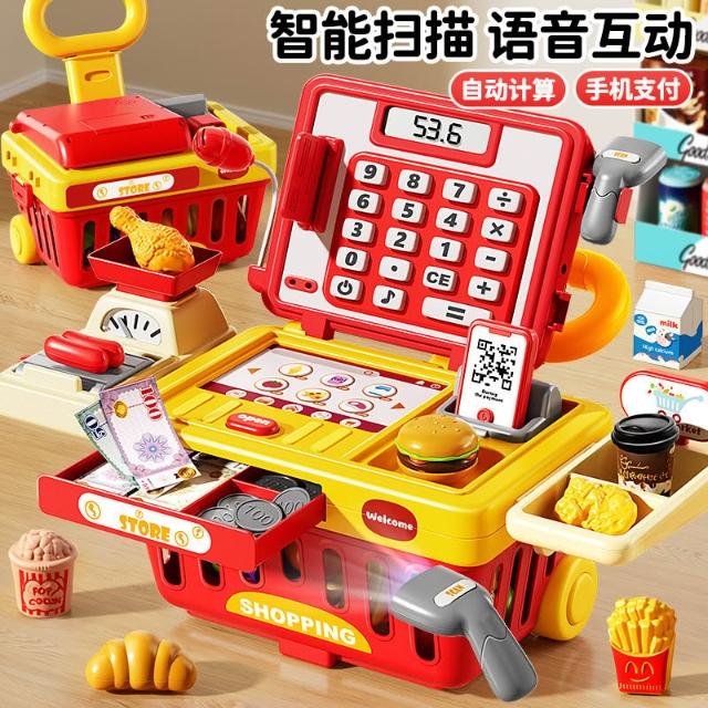 兒童便利店超市收銀機玩具男女孩子過家家網紅爆款廚房仿真購物車