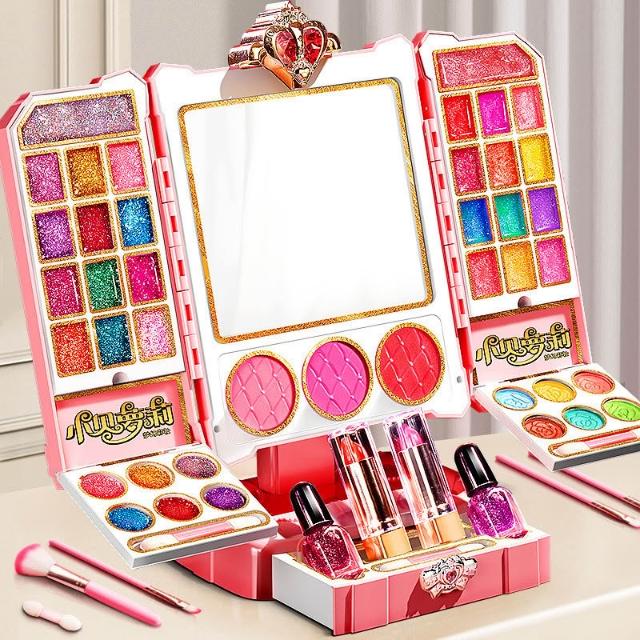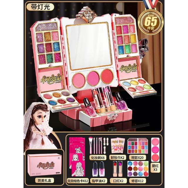 兒童化妝品玩具公主娃娃套裝梳妝台過家家女孩音樂彩妝盒批發送禮