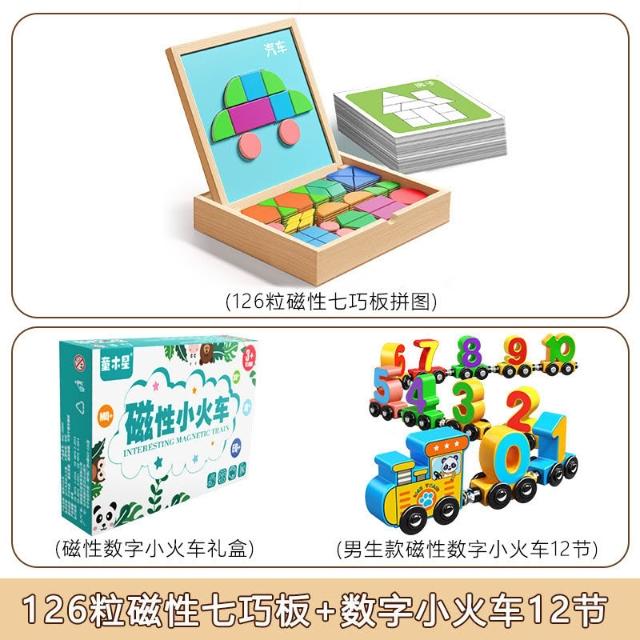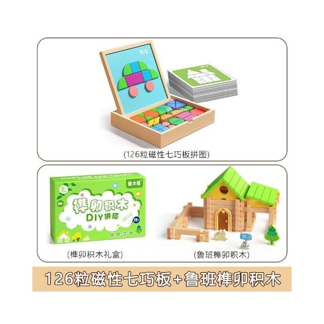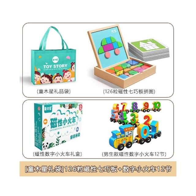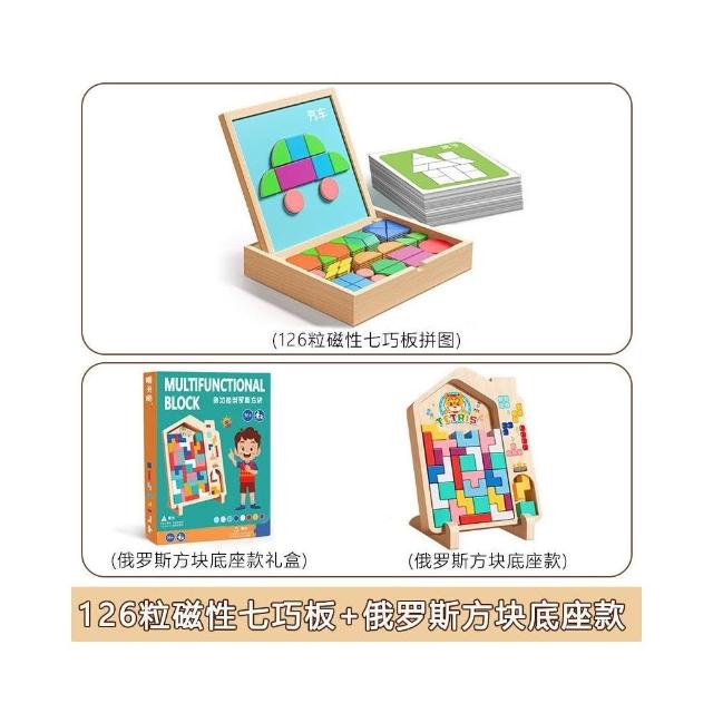 木質磁力拼圖積木3到6歲兒童思維訓練益智磁性七巧板立體幾何玩具