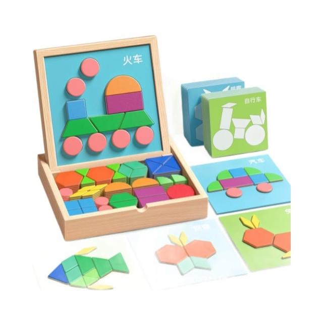 木質磁力拼圖積木3到6歲兒童思維訓練益智磁性七巧板立體幾何玩具