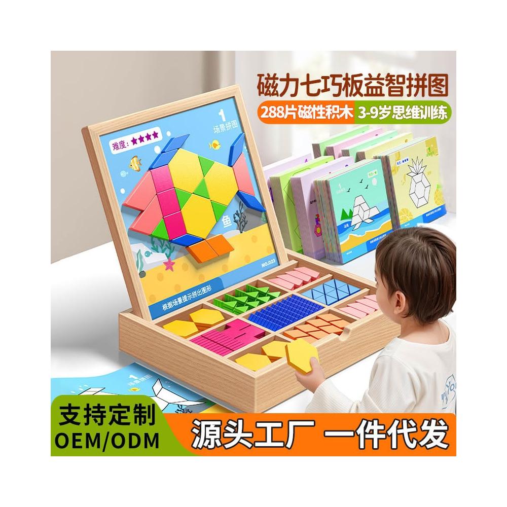 磁力片七巧板拼圖玩具幾何磁性積木寶寶幼兒園小學益智3到6歲兒童