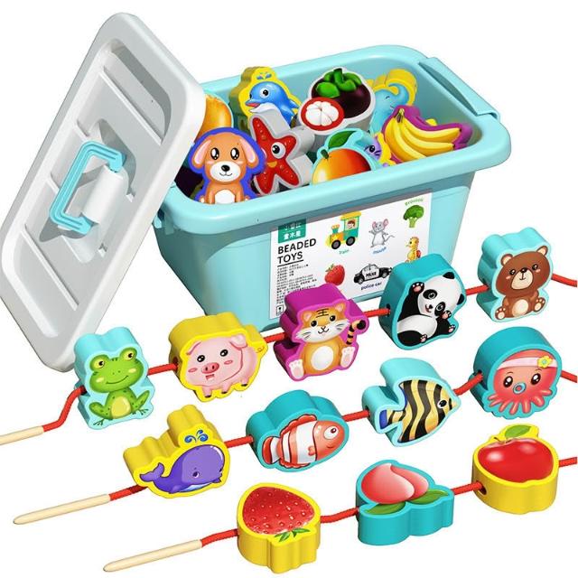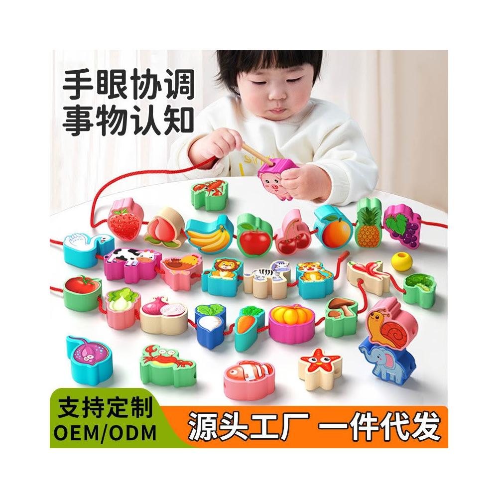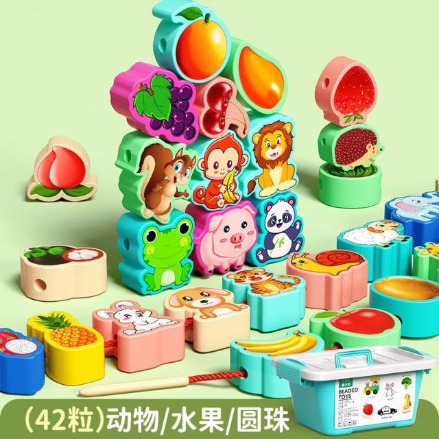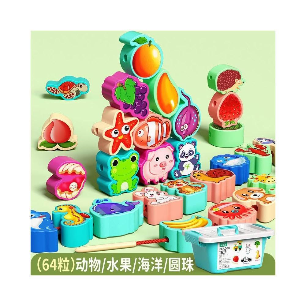 兒童串珠益智動腦動手專注力穿繩子蒙氏早教寶寶1-2歲大顆粒玩具