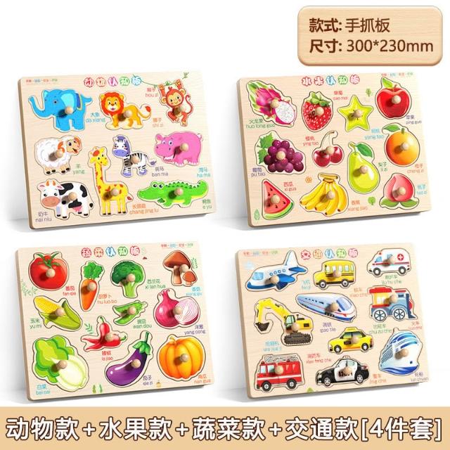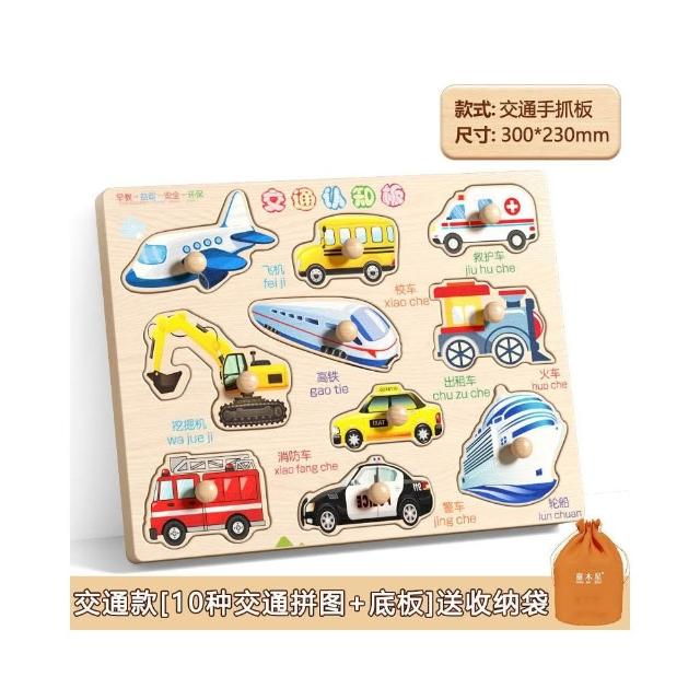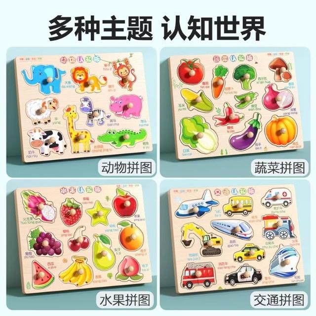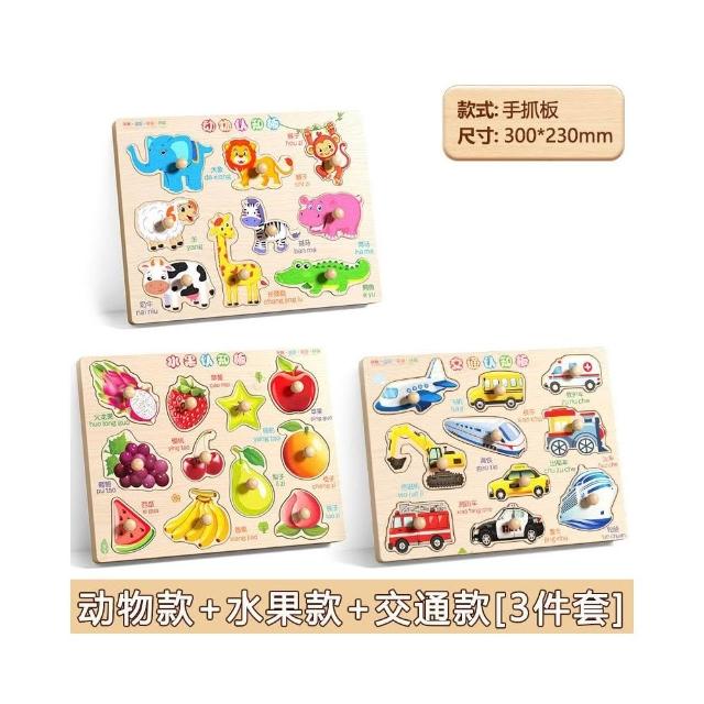 早教認知手抓板拼圖兒童積木益智力開發1一3歲男孩女寶寶玩具加厚