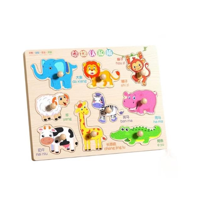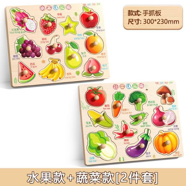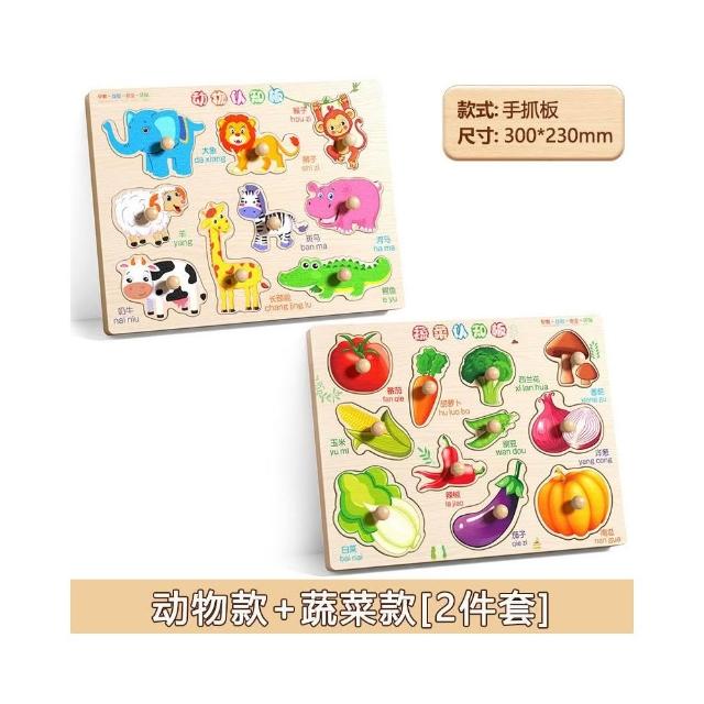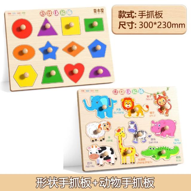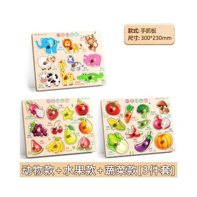 早教認知手抓板拼圖兒童積木益智力開發1一3歲男孩女寶寶玩具加厚