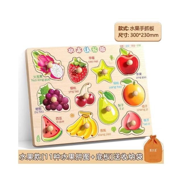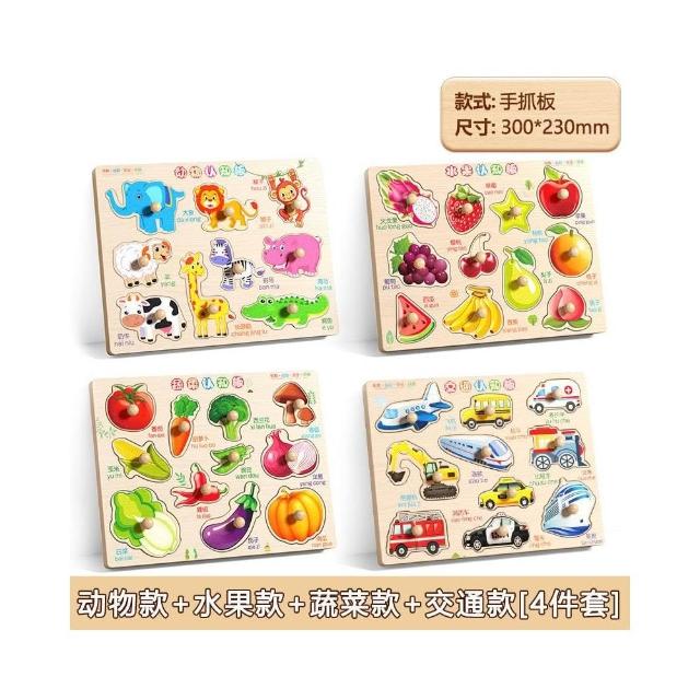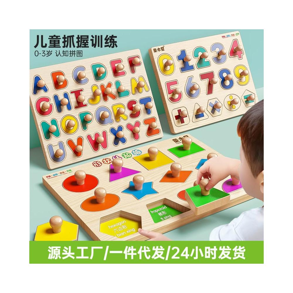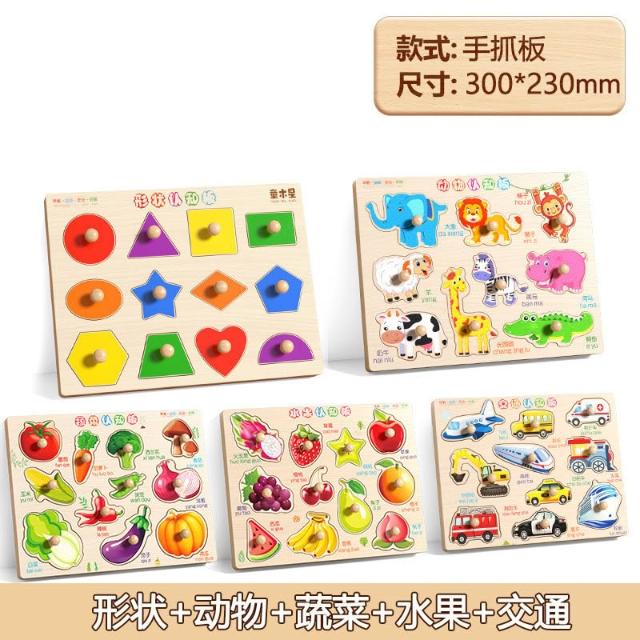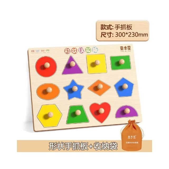 早教認知手抓板拼圖兒童積木益智力開發1一3歲男孩女寶寶玩具加厚