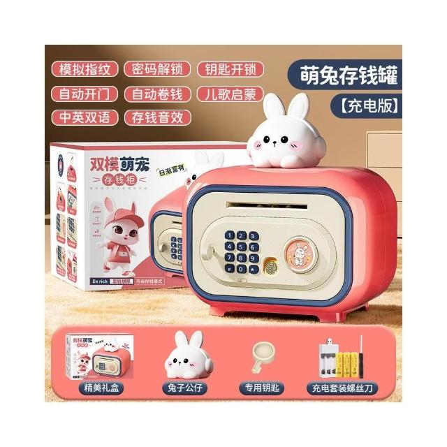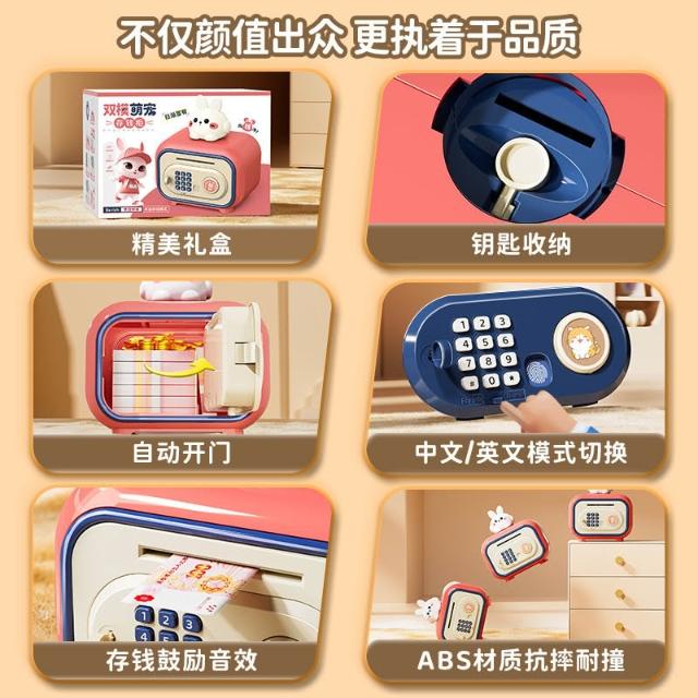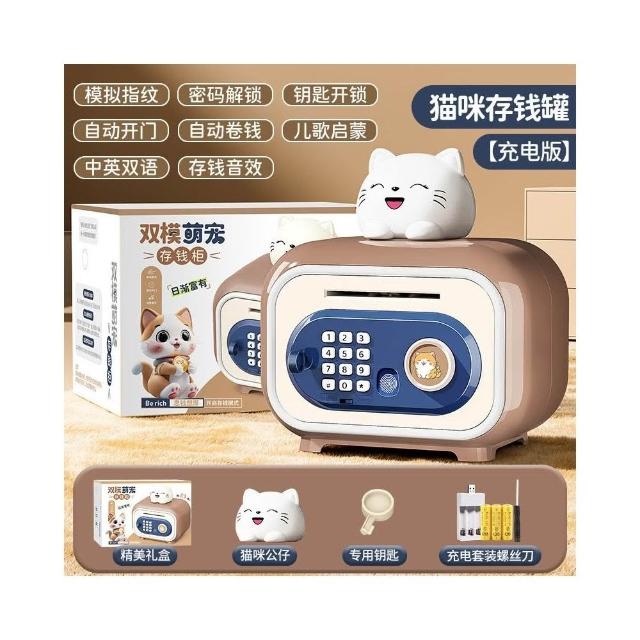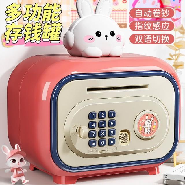 新品兒童卡通存錢罐大容量多功能雙模式開鎖自動感應卷錢儲蓄玩具