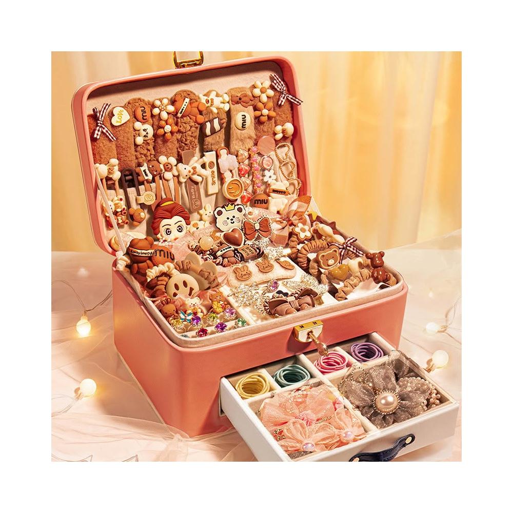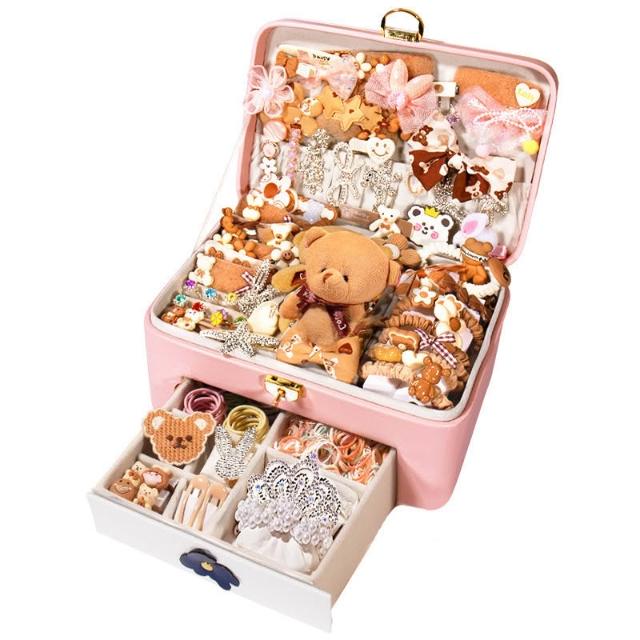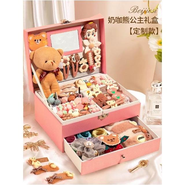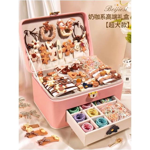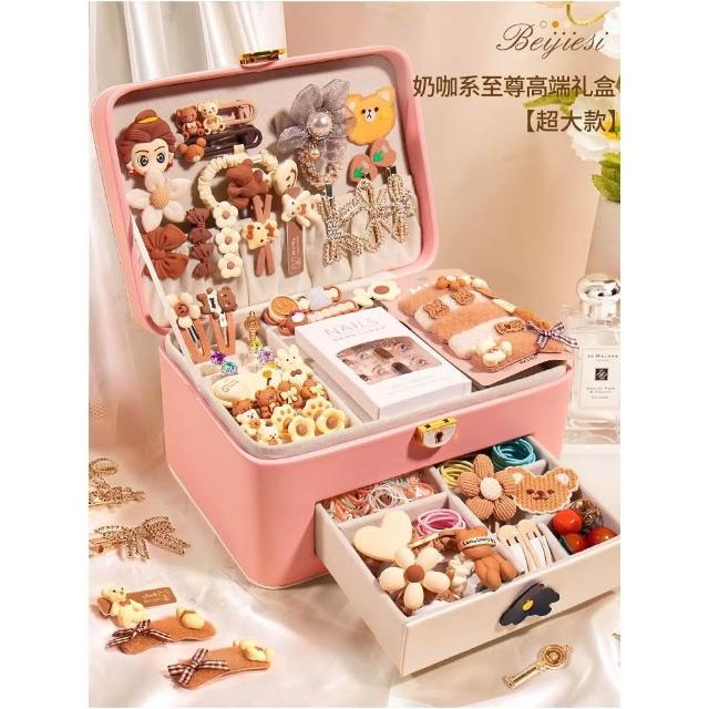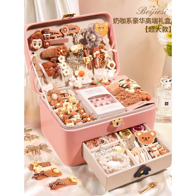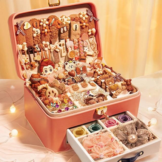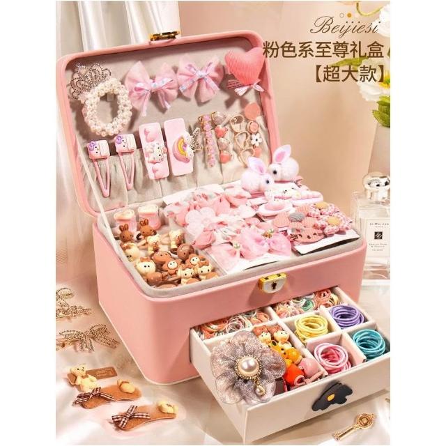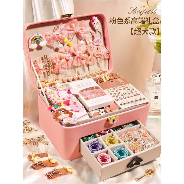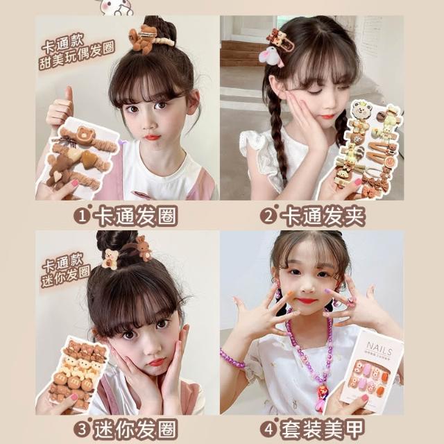 兒童髮夾發卡髮圈頭飾女孩美甲貼紙髮飾寶寶夾子髮圈公主收納送禮