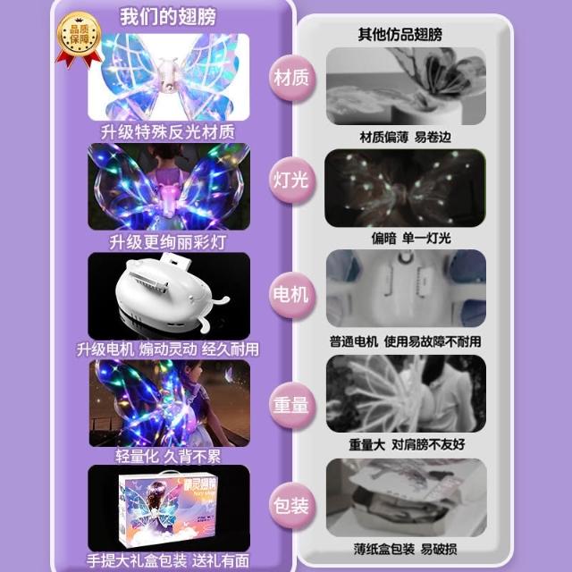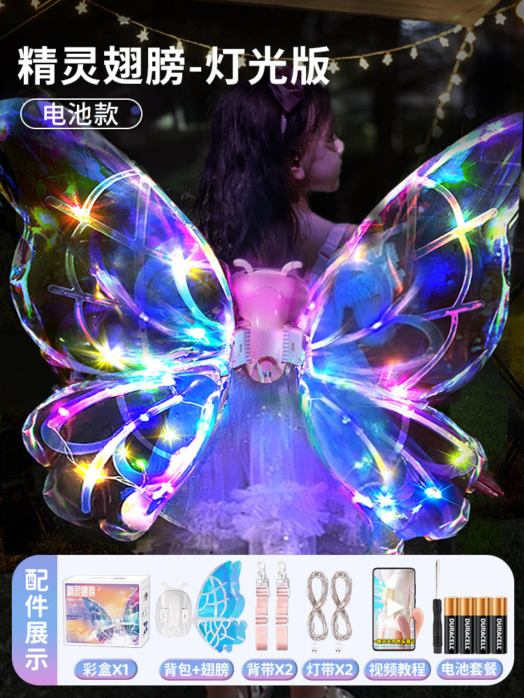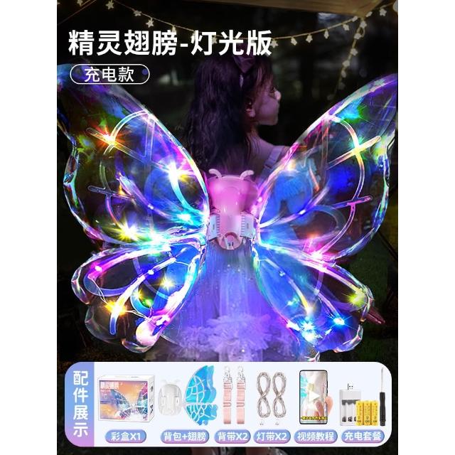 兒童女孩發光蝴蝶電動翅膀帶燈七色彩燈玩具音樂天使精靈翅膀地攤