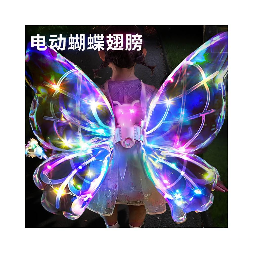 兒童女孩發光蝴蝶電動翅膀帶燈七色彩燈玩具音樂天使精靈翅膀地攤