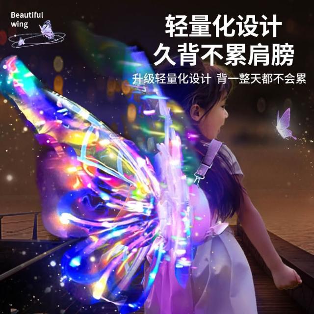 兒童女孩發光蝴蝶電動翅膀帶燈七色彩燈玩具音樂天使精靈翅膀地攤