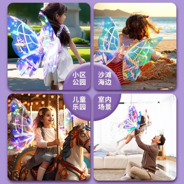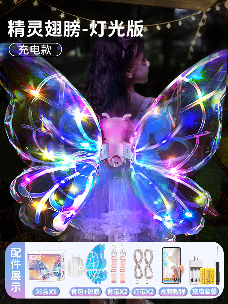 兒童女孩發光蝴蝶電動翅膀帶燈七色彩燈玩具音樂天使精靈翅膀地攤