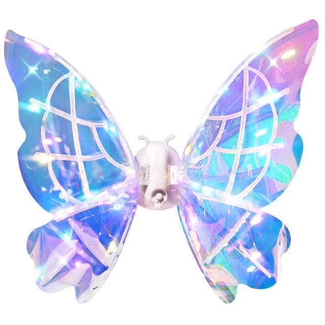 兒童女孩發光蝴蝶電動翅膀帶燈七色彩燈玩具音樂天使精靈翅膀地攤