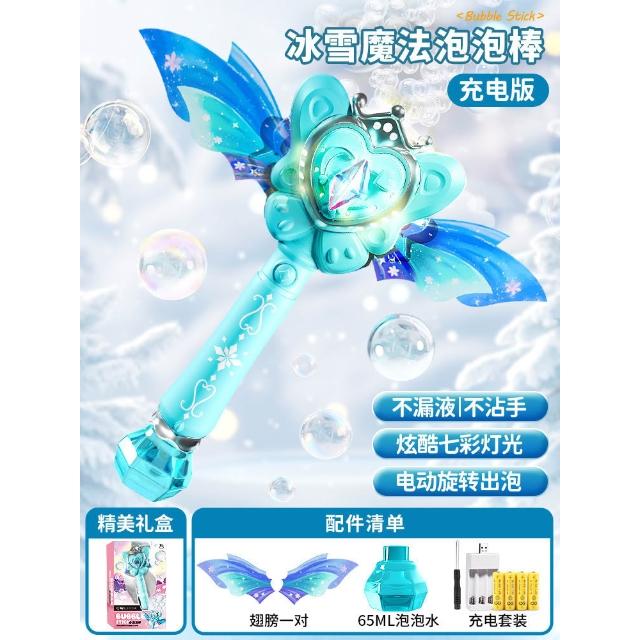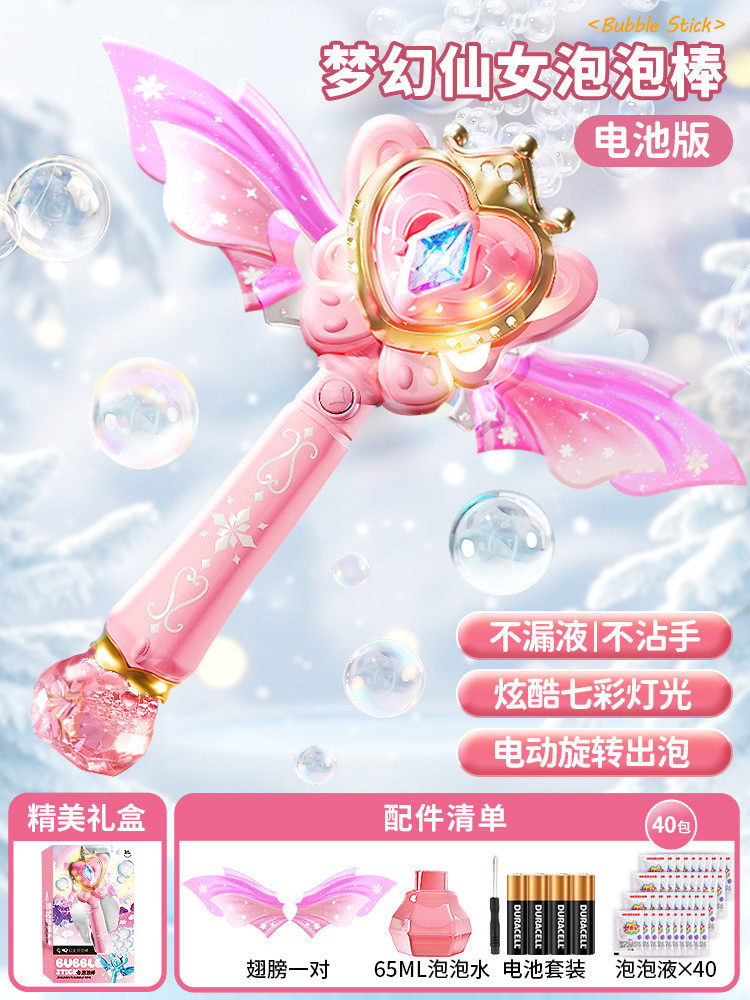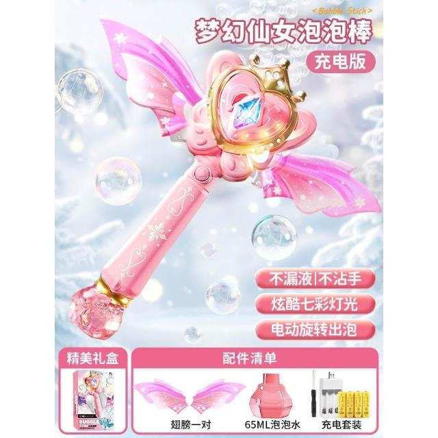 網紅公主魔法棒泡泡機仙女手持發光音樂防漏全自動泡泡棒女孩玩具