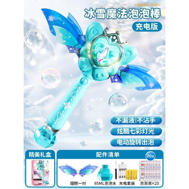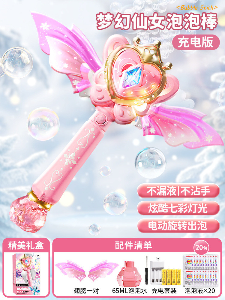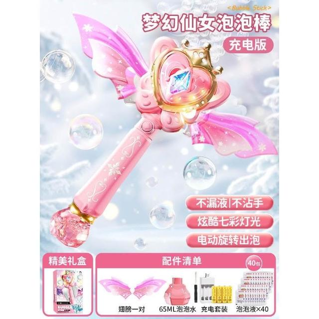 網紅公主魔法棒泡泡機仙女手持發光音樂防漏全自動泡泡棒女孩玩具